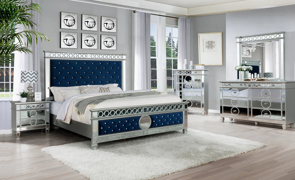 Color: Silver and Navy Blue Velvet on Headboard