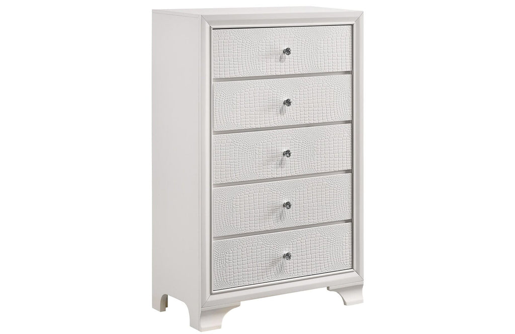 5 Pc. Set: Price is for Bed (Headboard, Footboard, & Rails), 1 Nightstand, Dresser, Mirror & Chest